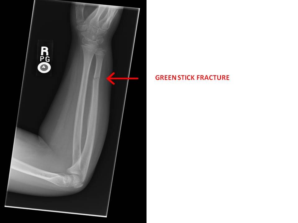 - Too much rigorous rubbing has led to “green stick fractures” in the baby. A green stick fracture is a fracture in a young, soft bone in which the bone bends and breaks. Despite the name “fracture”, during the majority of cases the bone is broken and hard to find in x-rays.