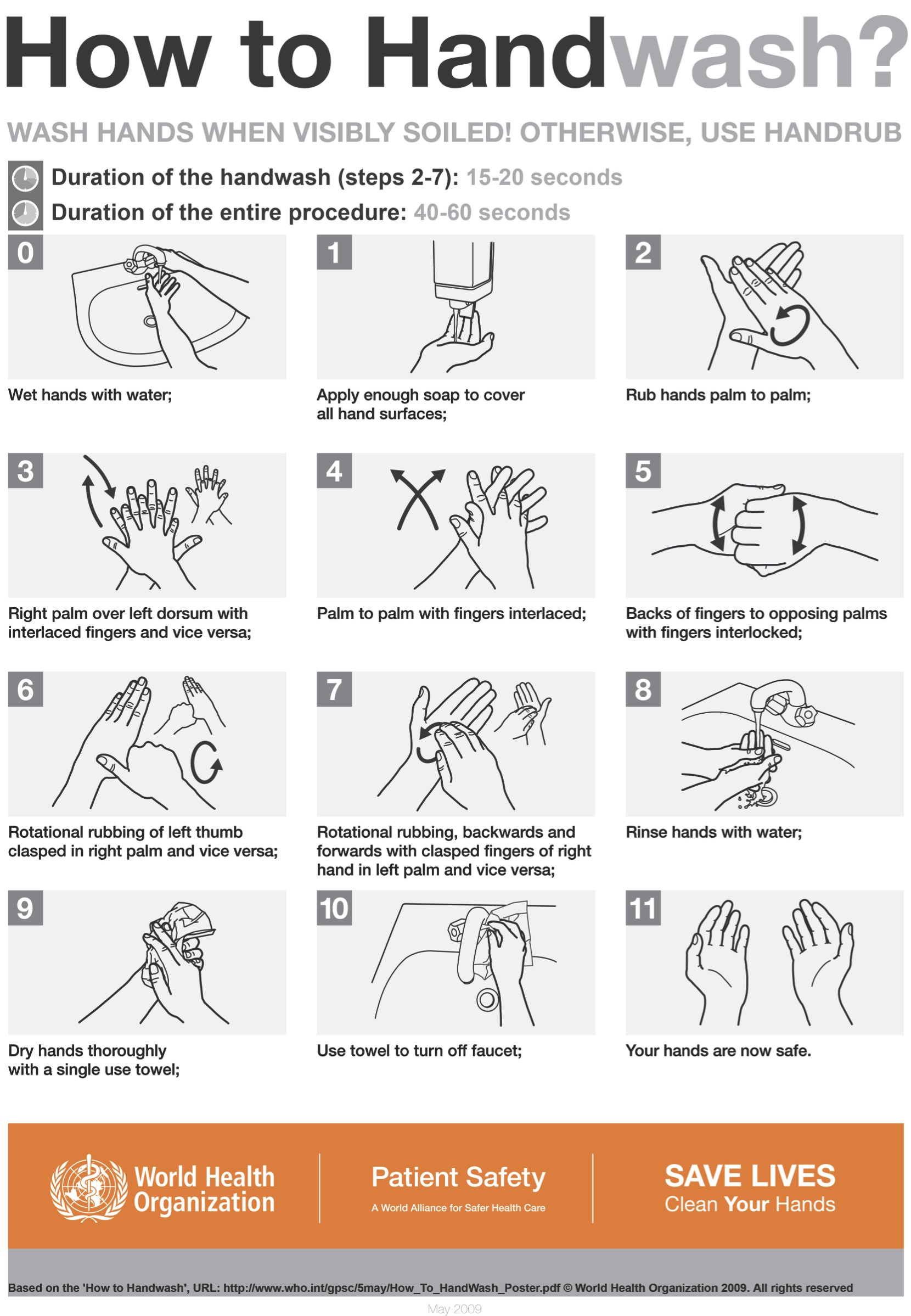 - Following is a picture chart showing WHO (World Health Organization) recommended steps of hand washing, which are also followed by surgeons world over before performing any surgery.